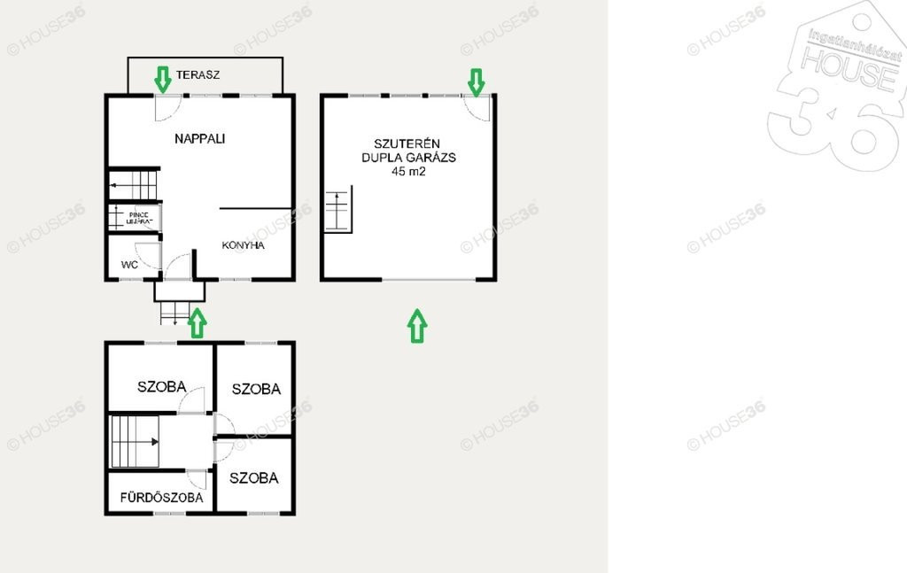 45 m2 dupla garázs, szuterén