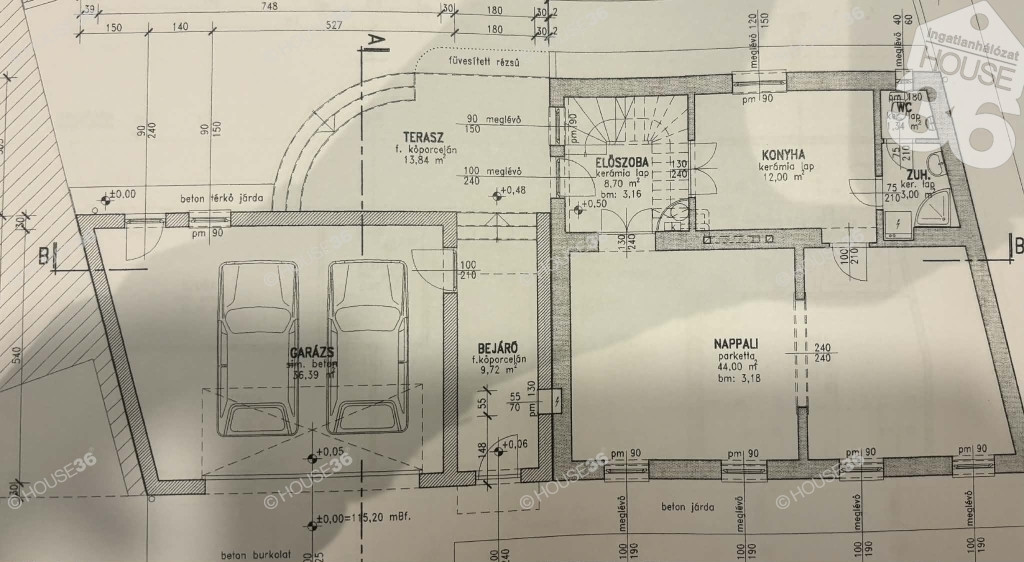 Elrendezés Földszint – a polgári elegancia tere: nagyvonalú előszoba dupla nappali, melyet a magas belmagasság és a bőséges természetes fény tesz igazán impozánssá konyha–étkező, zuhanyzós fürdőszoba
