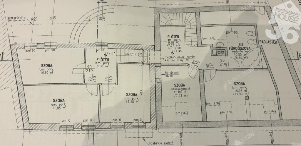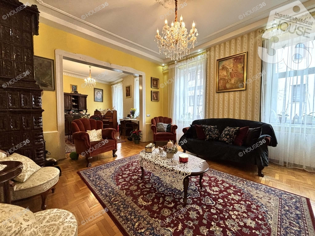 A 277 m²-es telken álló ingatlan eredeti, polgári része megőrizte a stílusra jellemző nagyvonalú belmagasságot, amely már az alsó szinten tágas, levegős és ragyogóan világos tereket teremt. Ez az elegáns térélmény különleges értéket ad a háznak.
