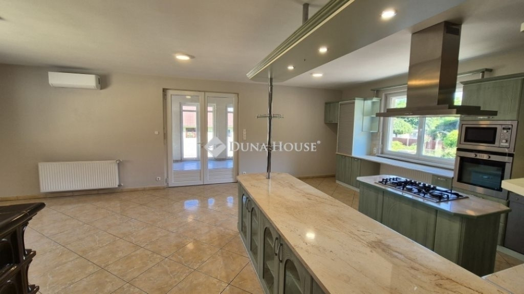 Kecskemét kedvelt kertvárosi részén Katonatelepen egy 620 m2-es saroktelken eladó egy 260 m2-es 4 szobás, vállalkozásra is alkalmas, teljesen alápincézett, gázfűtéses, kívül-belül frissen festett kiváló minőségű családiház.