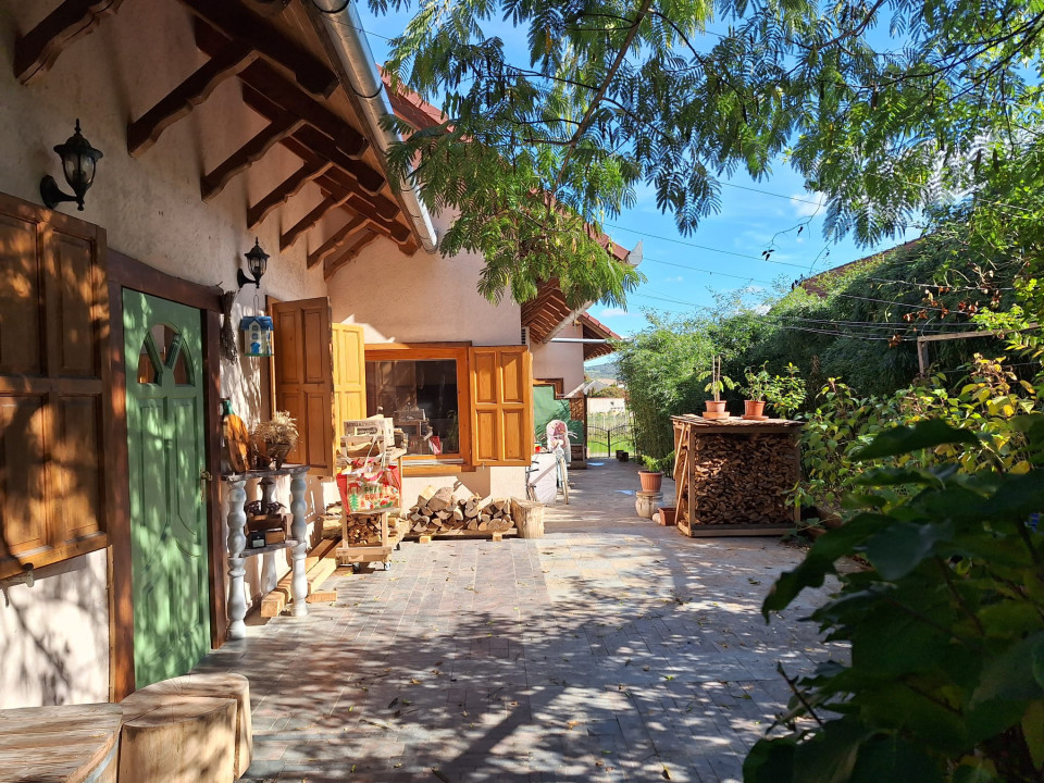 36 m² fedett közösségi terasz az erdő felőli oldalon (kerti csap, bográcsozó, tűzrakóhely, kültéri kandalló, grillező, pihenősarok)