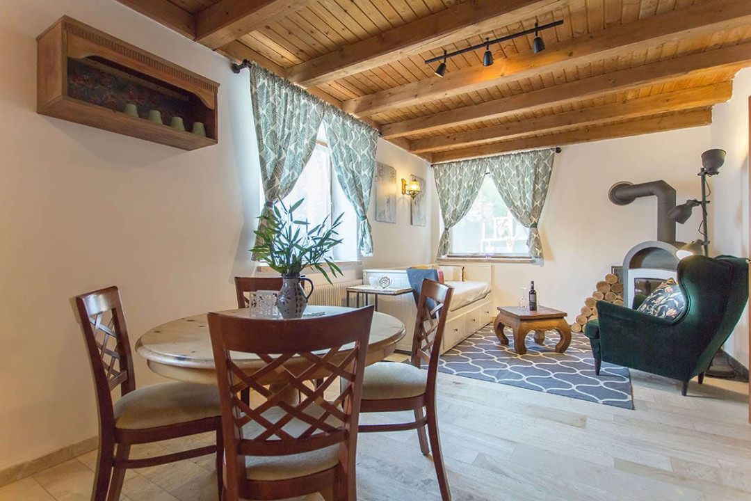 Gerendázott fafödémek, igényesen burkolt tetőtér