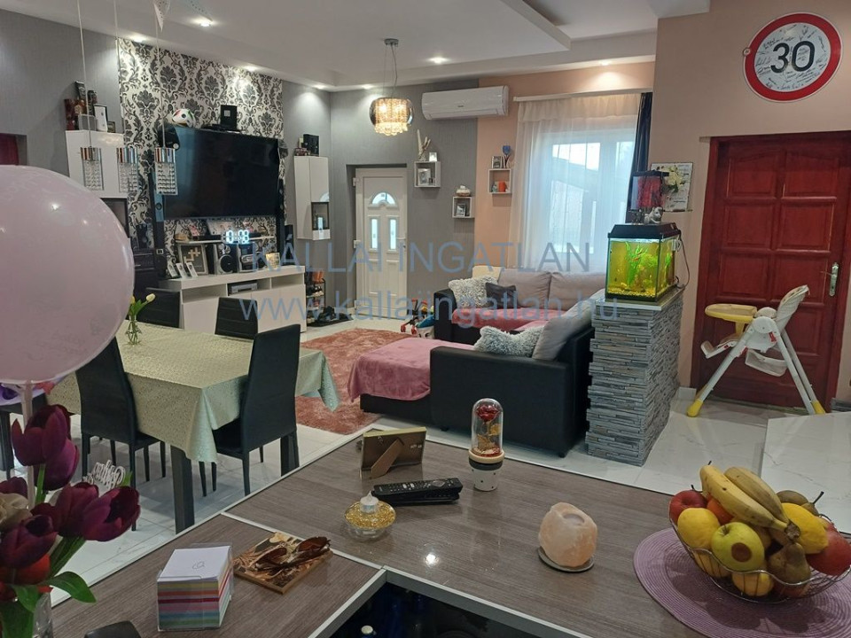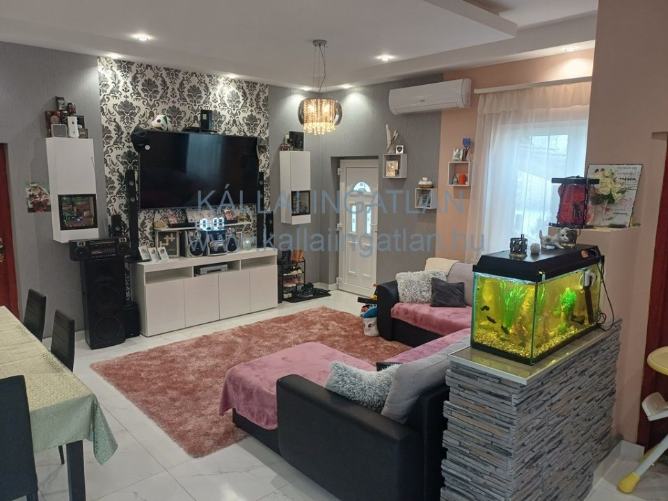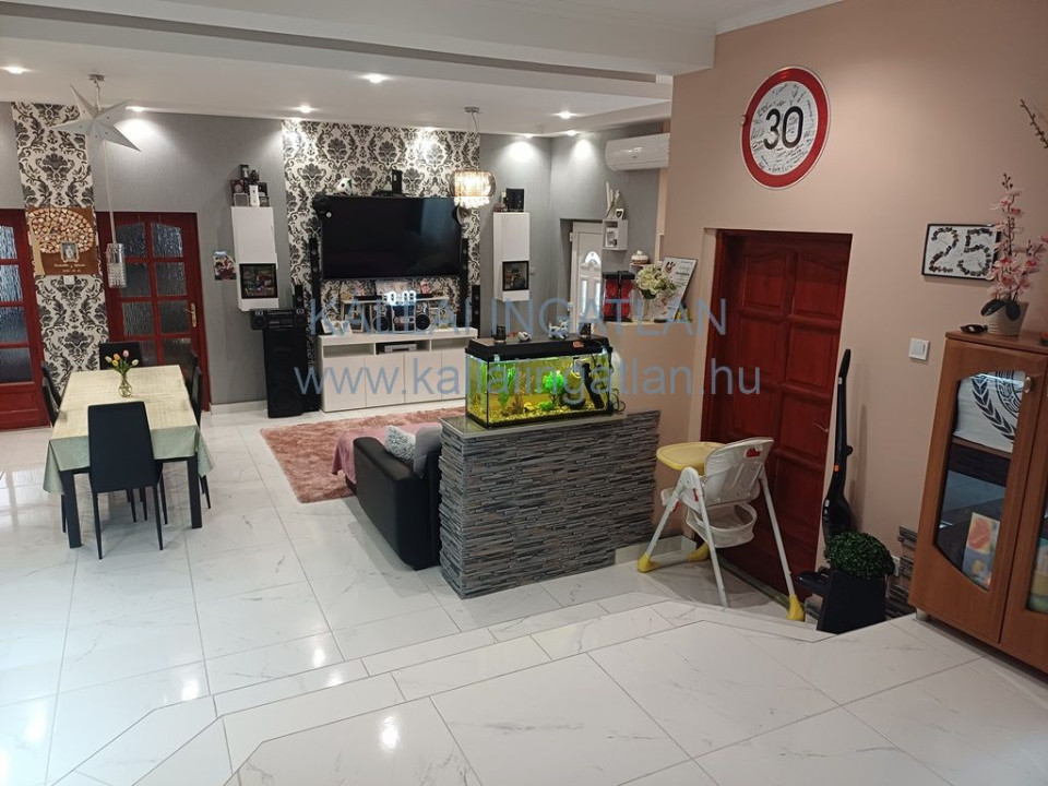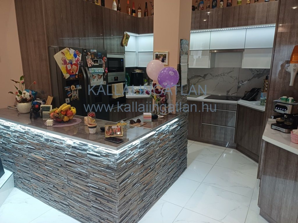 A konyhabútor egyedileg gyártott, gépesített. A családi házban található még egy 5,5 kw-s hűtő-fűtő klíma, riasztó és kiépített kamerarendszer.