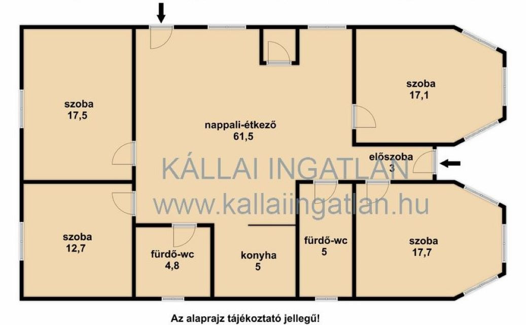 Az ingatlan elosztása: egylégterű tágas, világos, amerikai konyhával-étkezővel-nappalival, négy külön bejáratú hálószobával és kettő fürdőszobával rendelkezik.