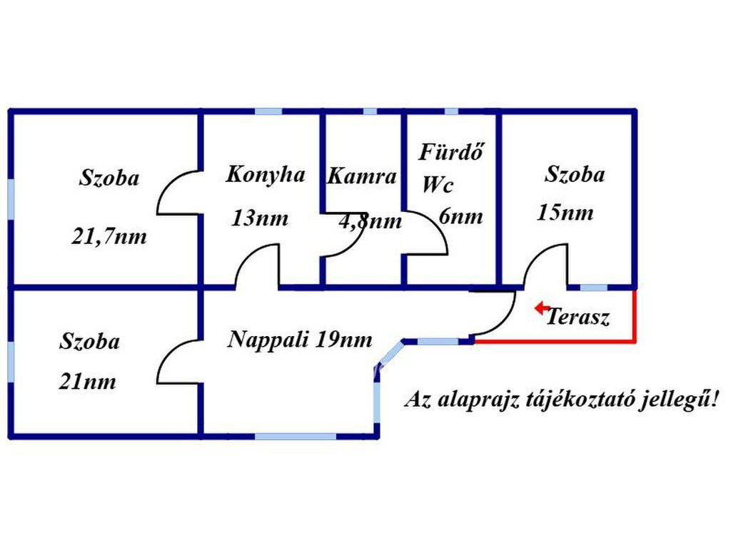 Elosztása praktikus: 3 külön nyíló szoba, nappali, kényelmes konyha, fürdőszoba, kamra található benne. Az ingatlan teljes bútorzata az ár részét képezi!