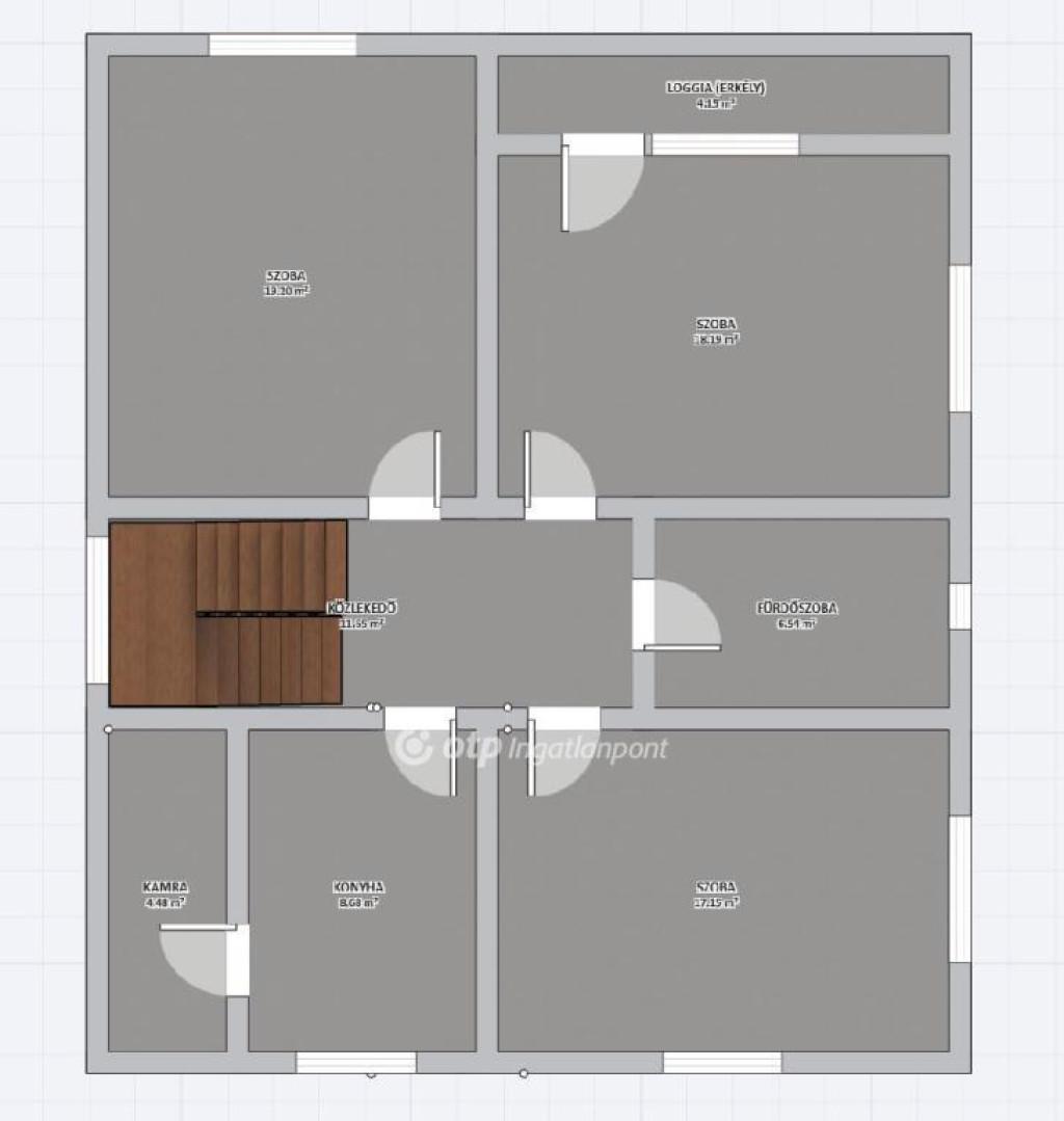 A ház összesen 182 m2 lakóteret kínál, két szinten elosztva. A földszinten garázs, egy külön bejáratú szoba, előszoba, konyha, zuhanyzó, a lépcső alatt wc, közlekedő és kazánház található, ideális akár külön lakrészként is. Az emeletet tágas, napfényes szobák uralják, a loggia csendes pihenőhelyet kínál, a konyha mellett kamra (innen lehet feljutni a padlásra is), a közlekedőből pedig egy jól használható fürdőszoba nyílik.
