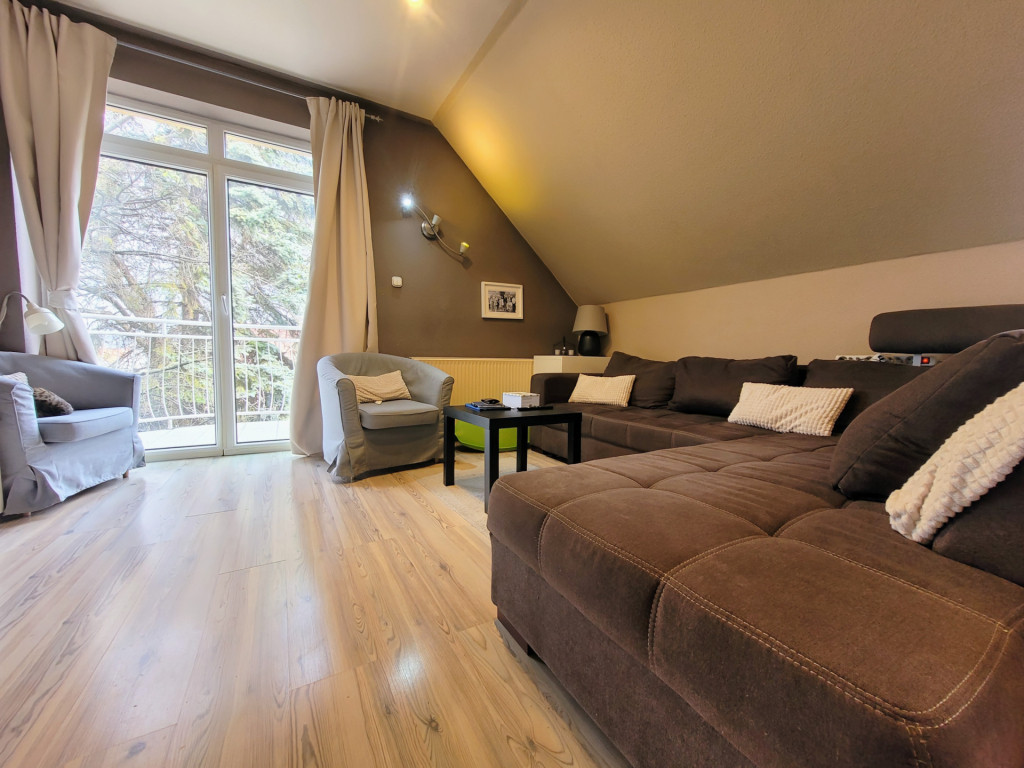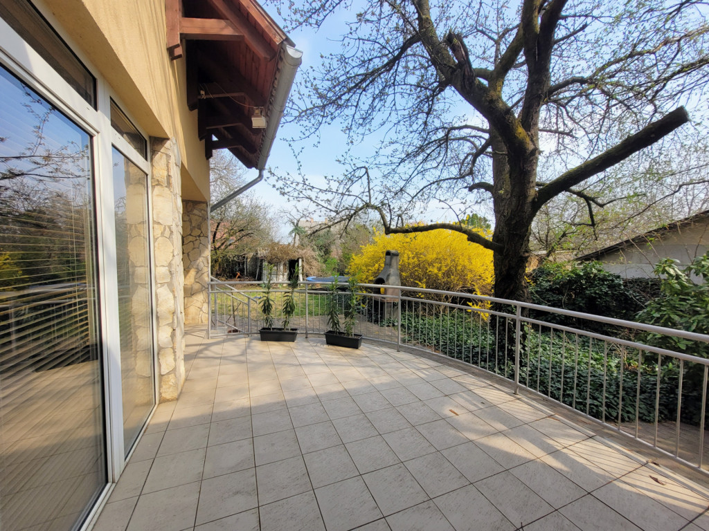 Tágas, privát terasz, panorámás erkély és egy kellemes, ősfákkal körülvett és elzárt kert (benne hinta, grill és kerti fészer) áll rendelkezésre a családi pihenéshez, szabadidős tevékenységekhez