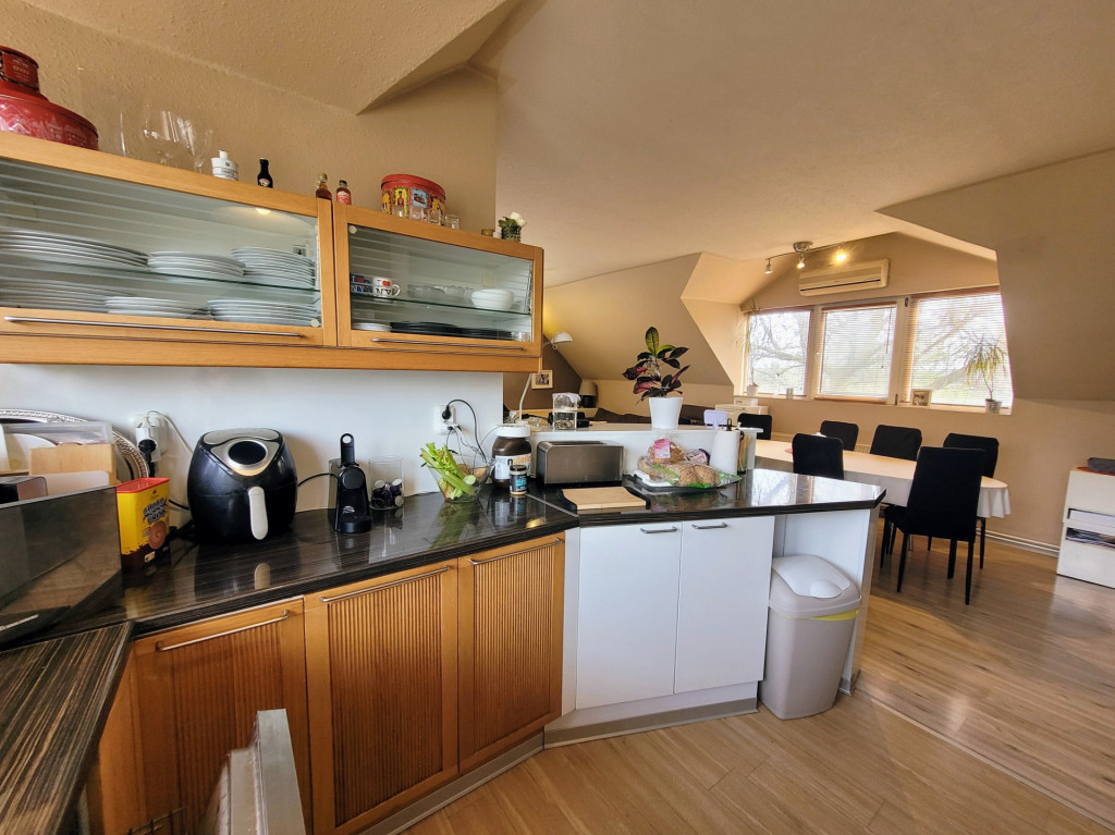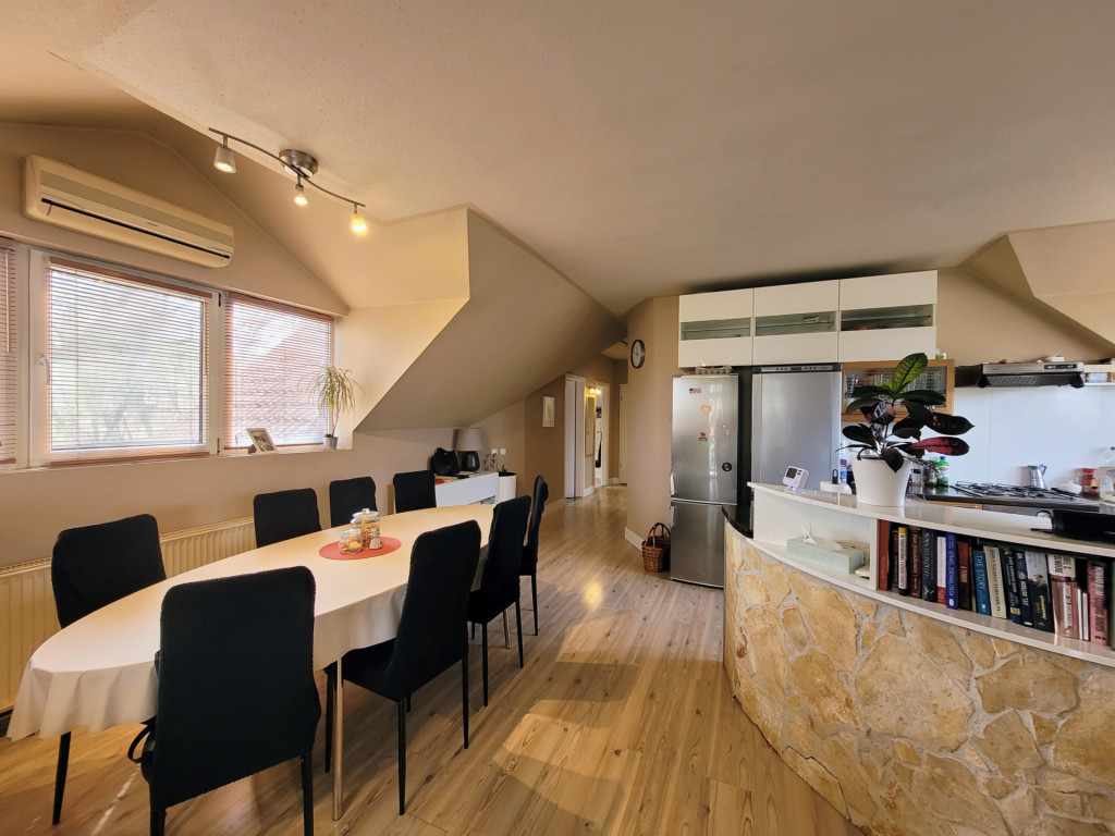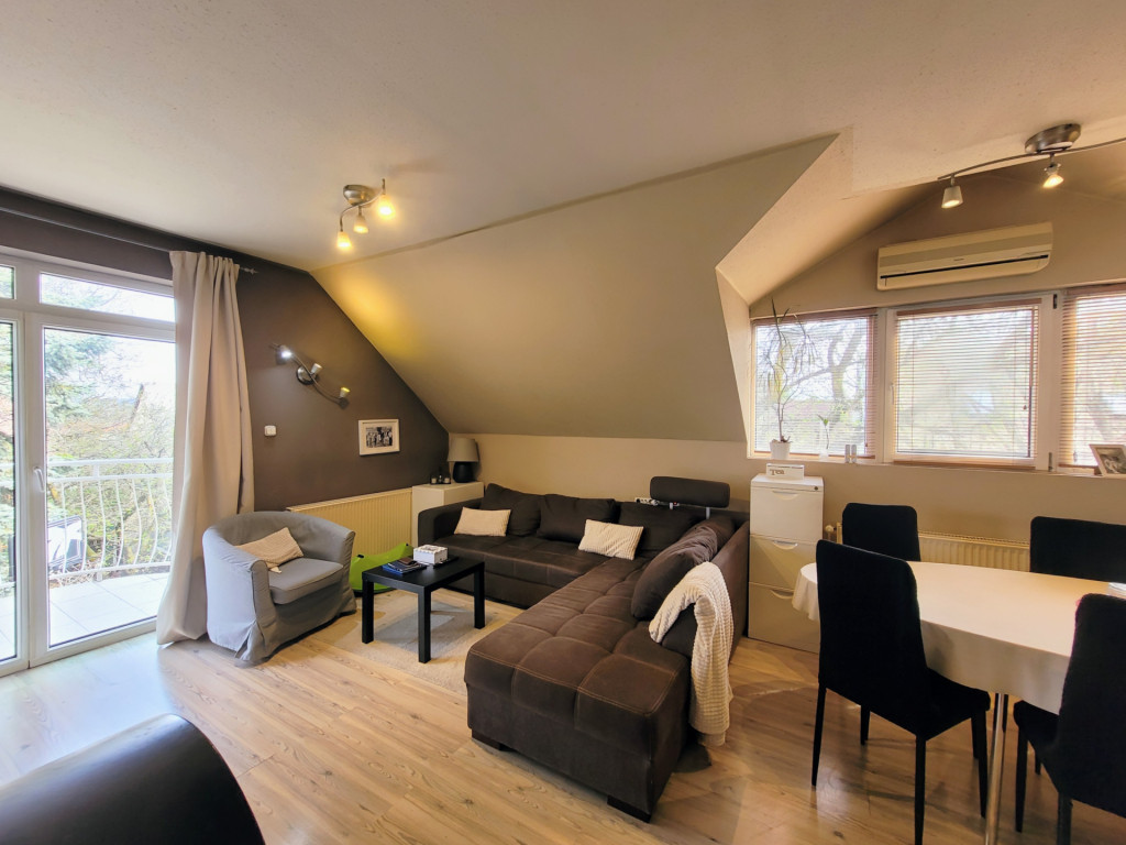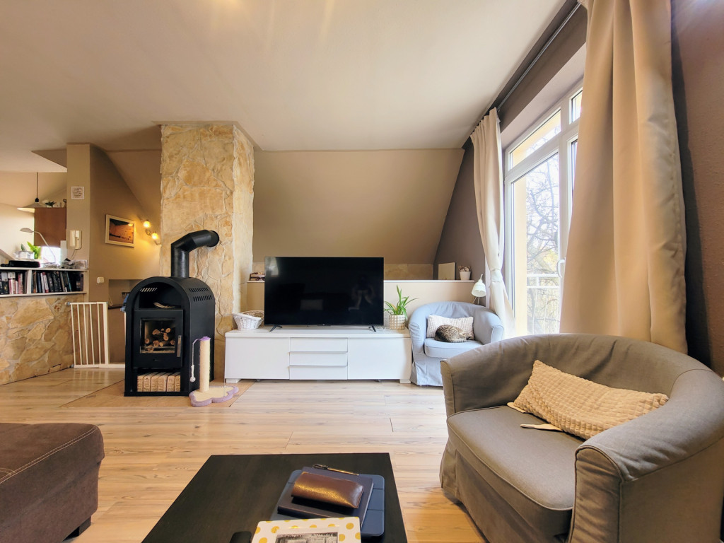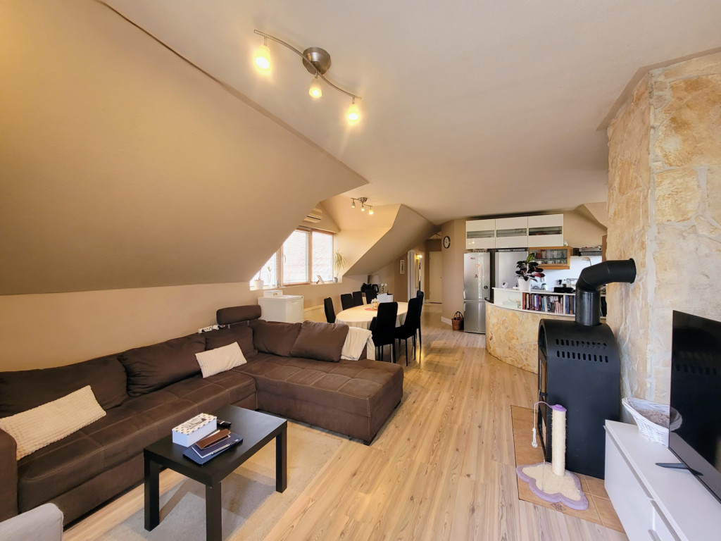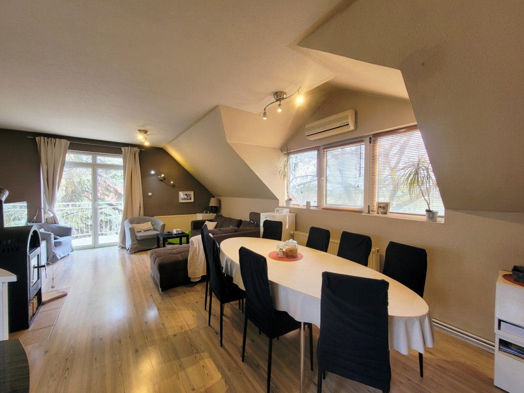 Emeleti nappalija klimatizált, s látványkályhával felszerelt.