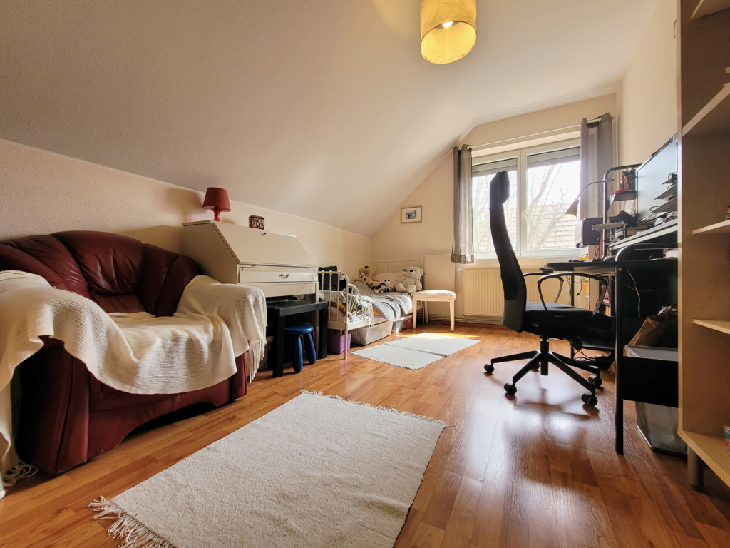 Infrastruktúra: minden alapintézmény pár perc sétára – iskola, óvoda, bölcsőde, önkormányzat, gyermekorvosi rendelő, gyógyszertár, posta