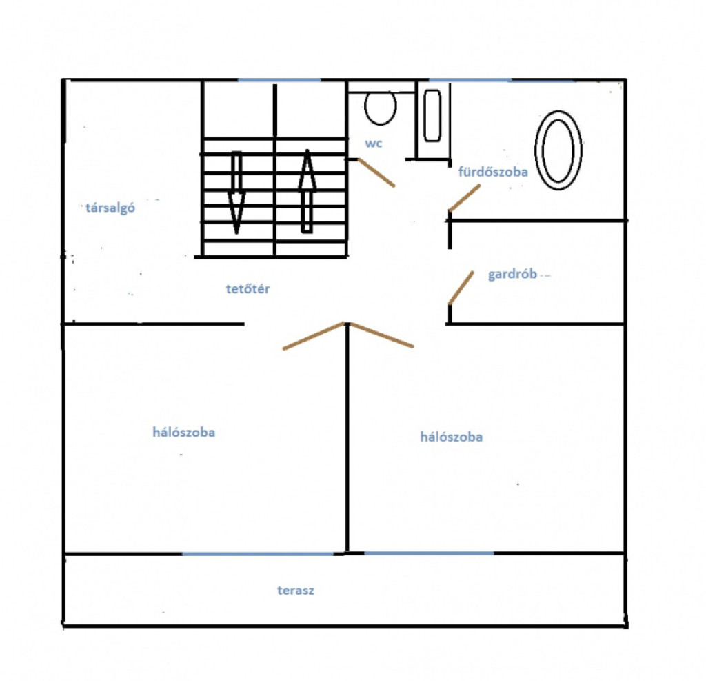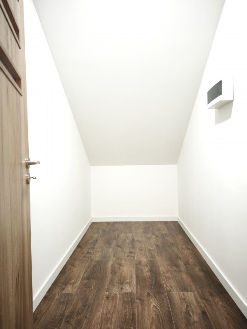 A tetőtérben egy kényelmes társalgó fogadja az érkezőket, innen nyílik két nagyméretű hálószoba és egy gardróbhelyiség. A szinten egy kádas fürdőszoba beépített mosdóval és külön mellékhelyiség is található. Az emelethez tartozik egy 14 m²-es erkély, amely kellemes pihenőhelyet kínál.