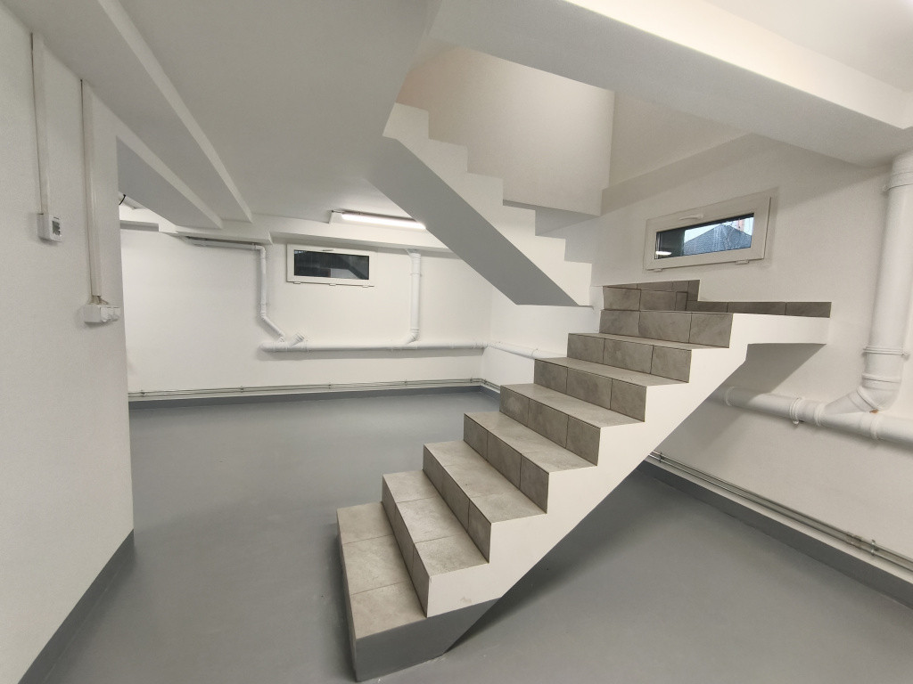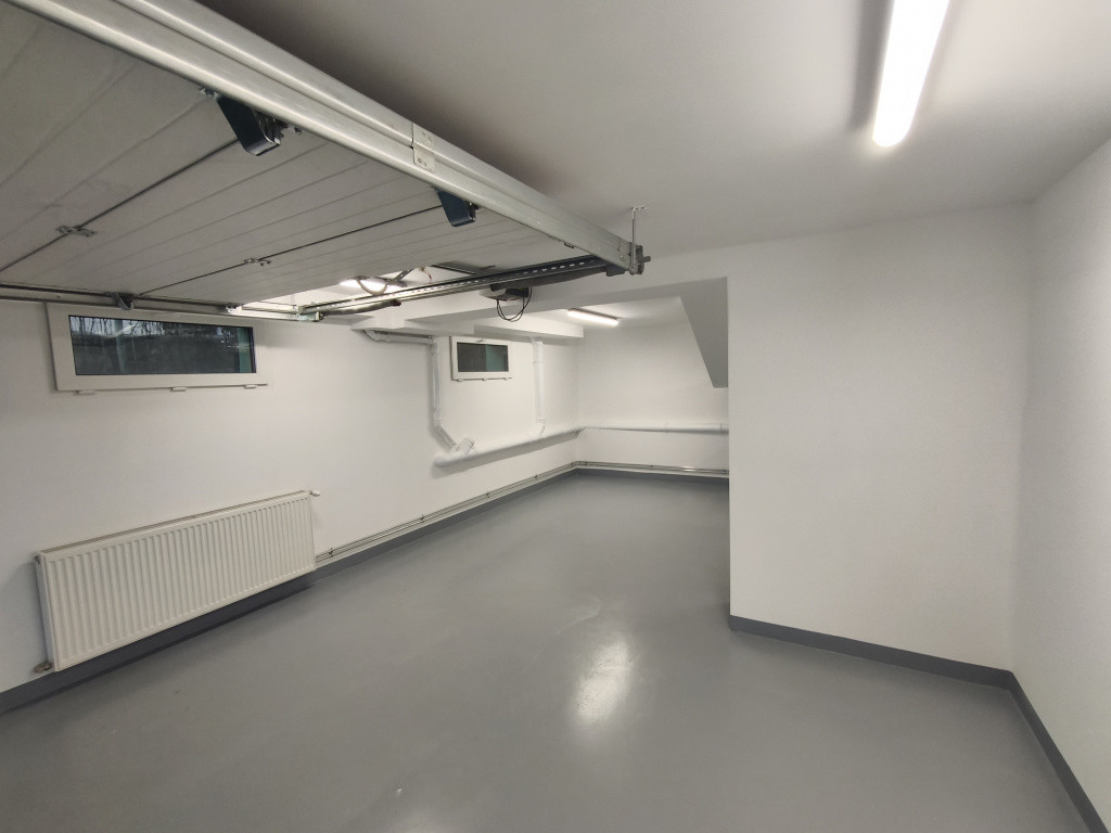 A ház alatt található szuterén praktikus kiegészítő tere az ingatlannak. Itt akár két autó számára kialakított garázs található elektromos garázskapuval, emellett kazánház és mosókonyha is helyet kapott. A mosókonyhában előkészített csatlakozások állnak rendelkezésre mosógéphez, szárítógéphez és víztisztító rendszerhez.