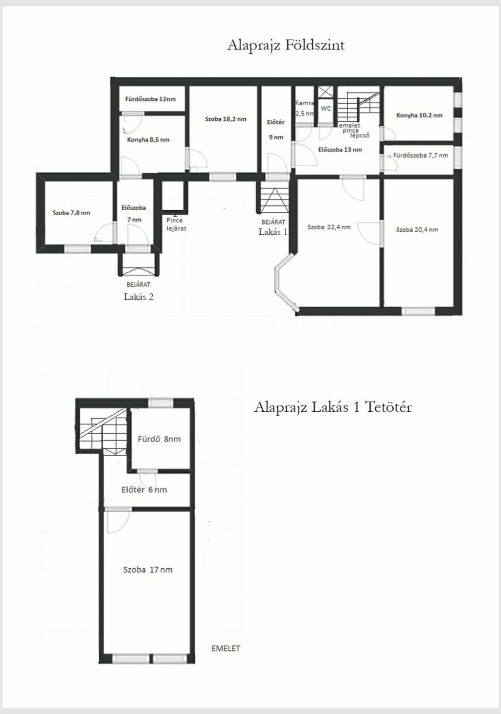 -Tetőtér: fürdő+WC, szoba (30 m²)