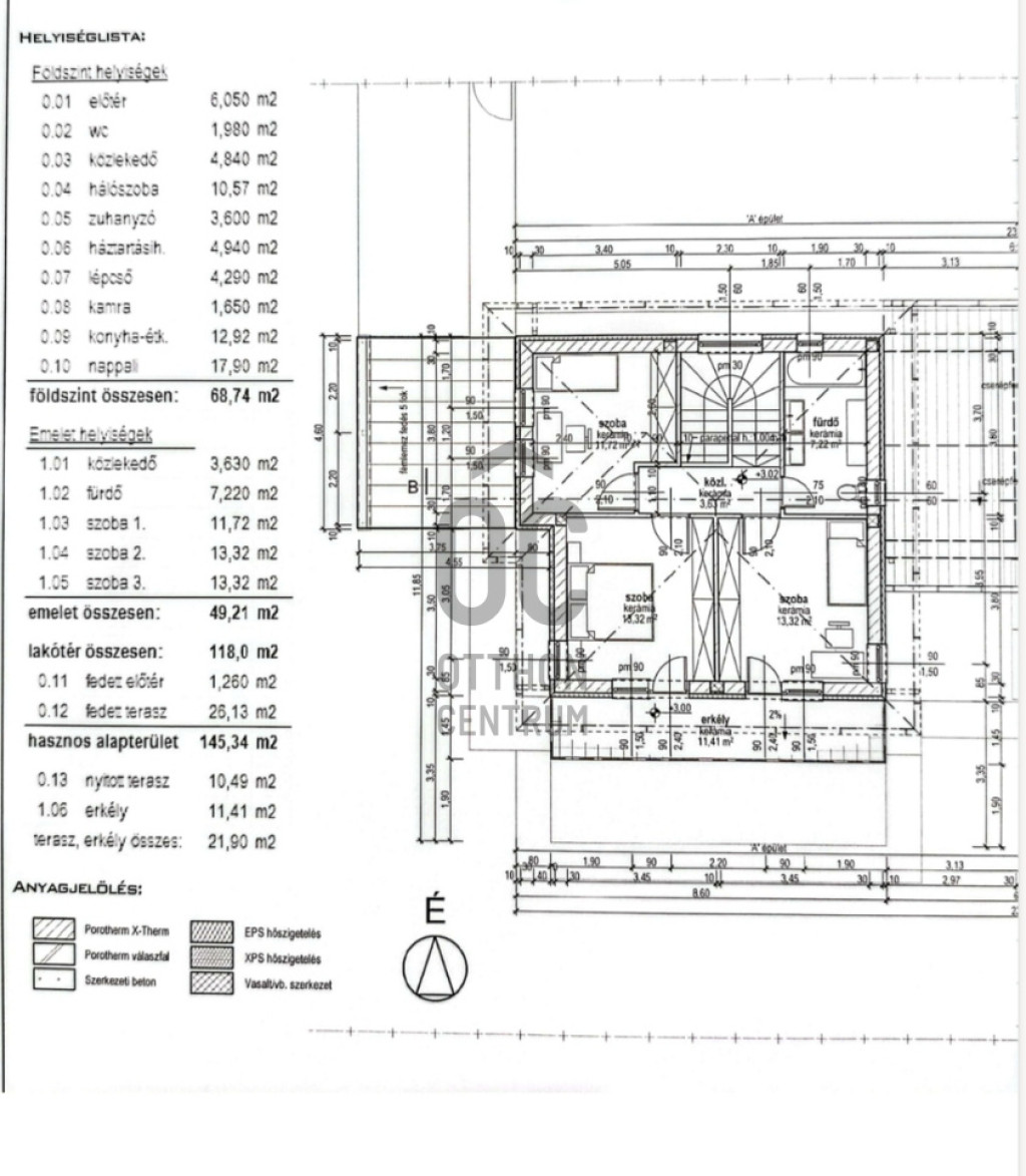 - a belső két szintes ingatlan lakótere összesen: 118 m2