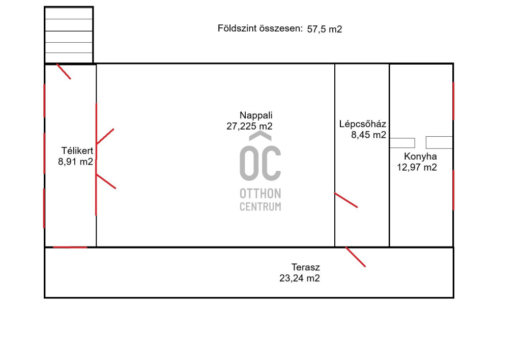 - NY-i tájolású nappali,