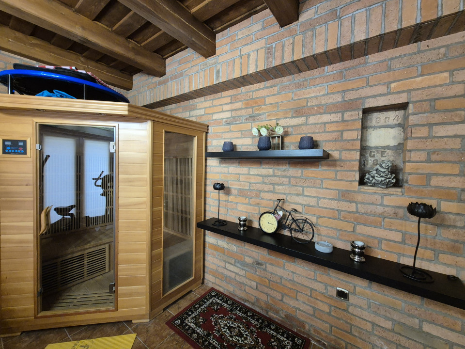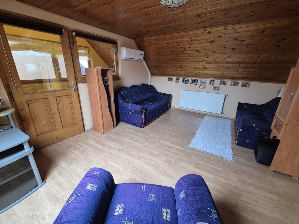A épület hátsó felében egy önálló aparman van, ami alkalmas lakhatásra is, jelenleg szauna, konyha, élettér és zuhanyzó és WC van benne kialakítva.