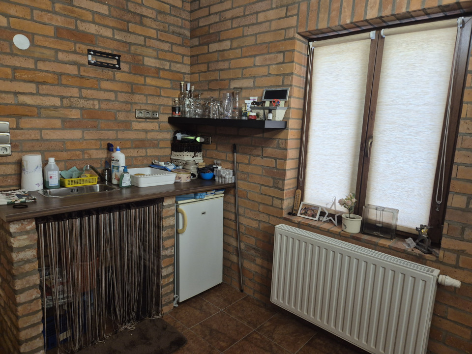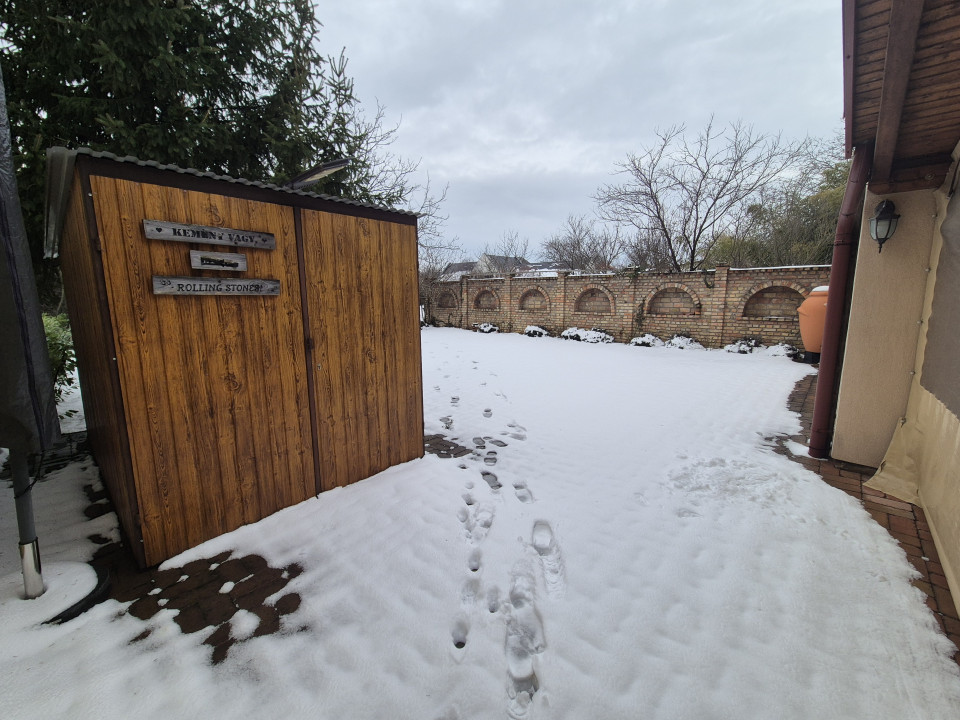 Az udvarban lévő melléképület egyik része tároló, ahol helyet kapott a gázkazán és egy vegyestüzelésű kazán (Totya). Itt van az alsó szint villanybojlere is elhelyezve.