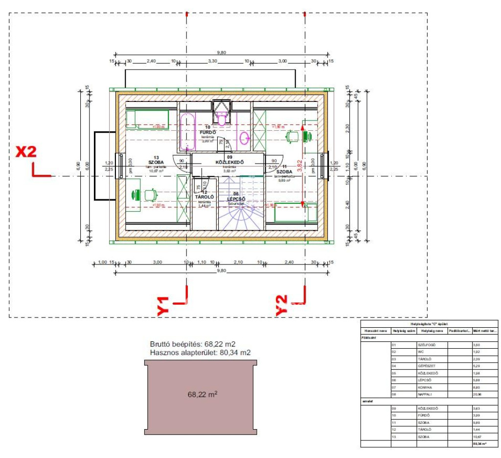 - 20 cm-es homlokzati hőszigetelés