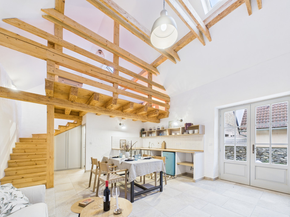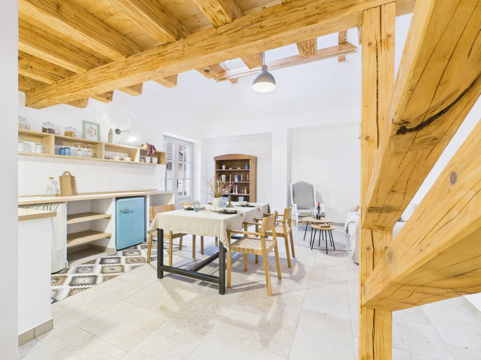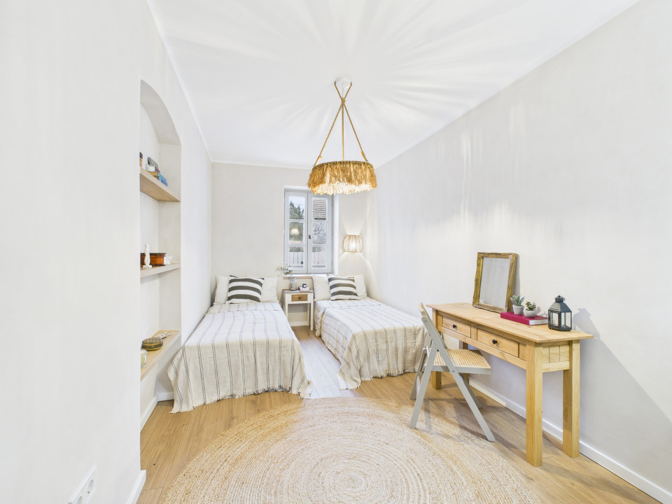 Die größere Wohnung ist 106 m², die kleinere 38 m², was sie ideal für ein Gästehaus oder als Investitionsobjekt macht.