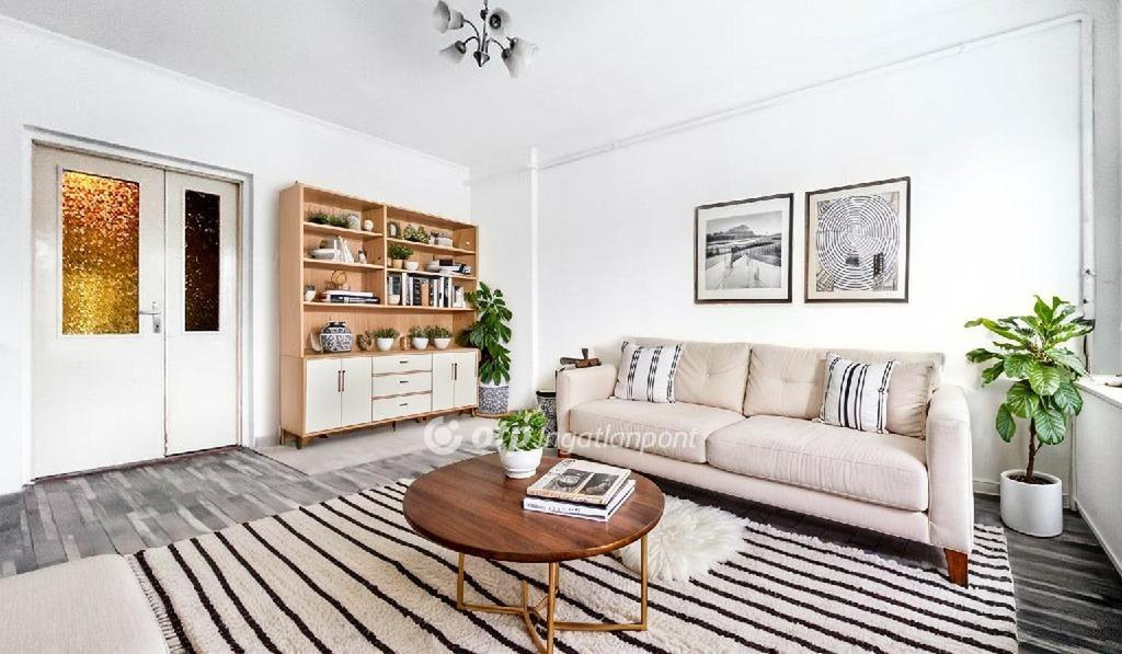 A lakás a konyhabútor kivételével üres állapotban van, a bútorok az illusztráció része.