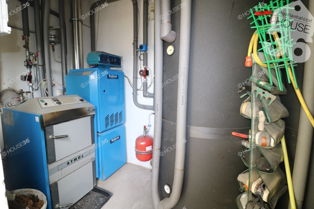 - Fűtés: fatüzelésű kazánnal és gázkazánnal (Buderus márkájú), valamint puffer tartályokkal üzemeltetett fal és padlófűtés rendszer.