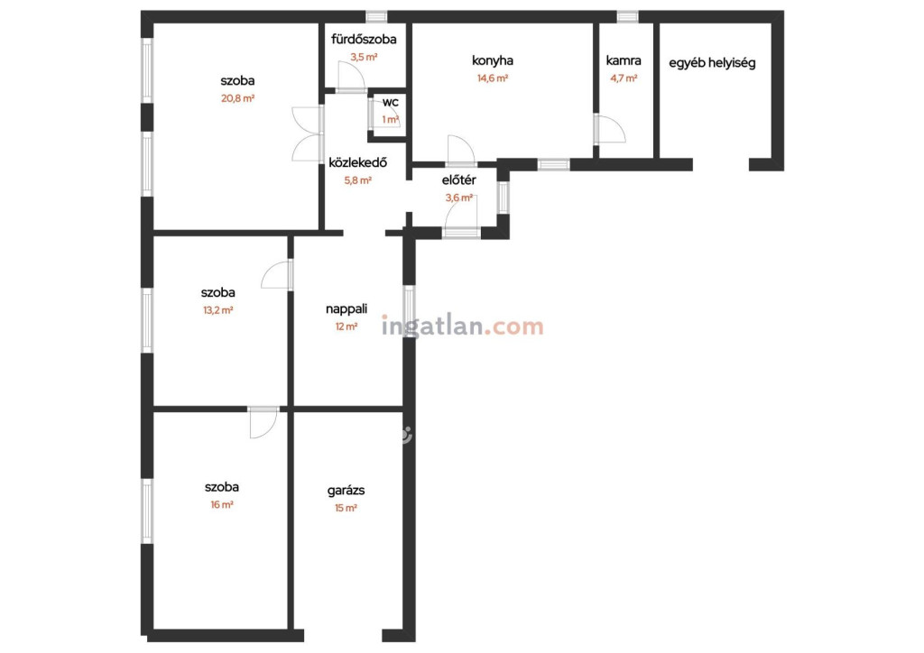 4 tágas szoba, konyha kamrával, fürdőszoba, külön WC, előszoba