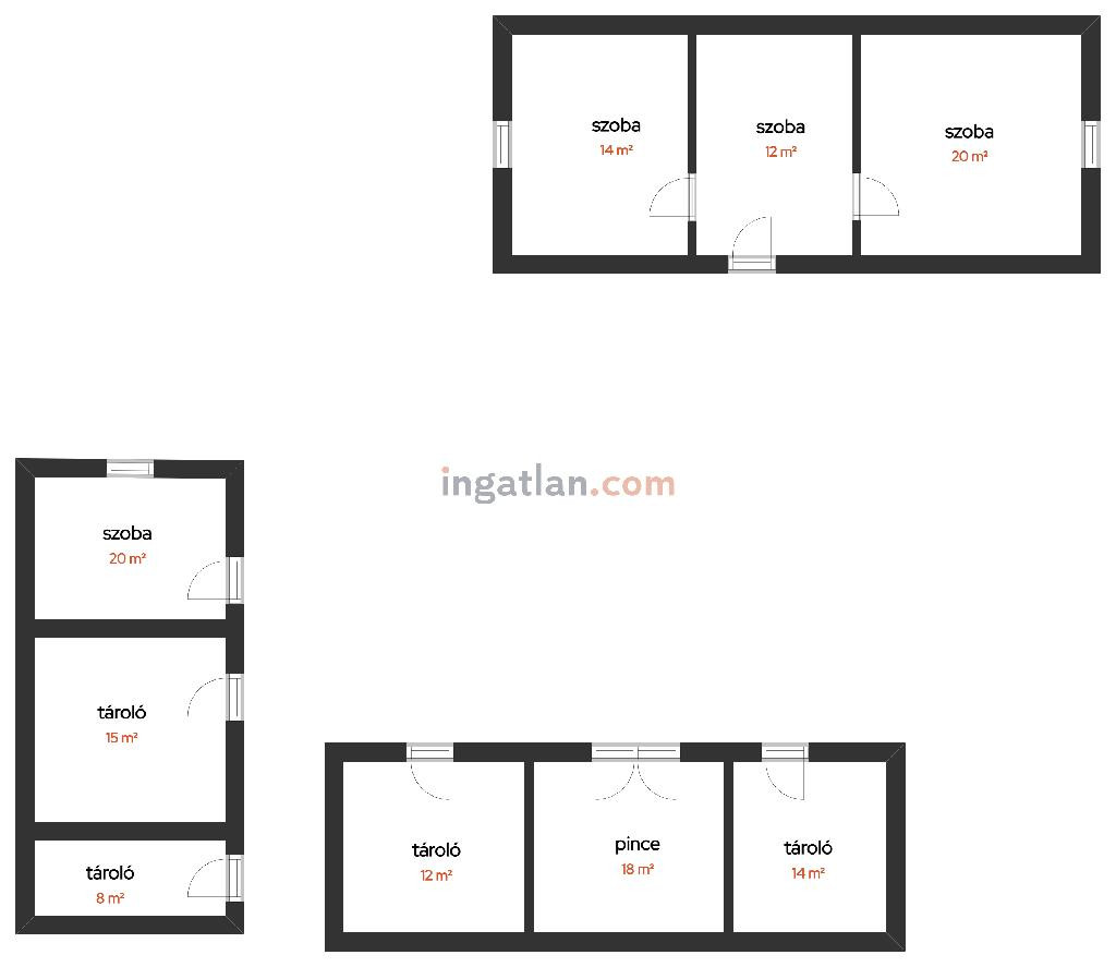A harmadik melléképületben pince és 2 tárolóhelyiség kapott helyet.