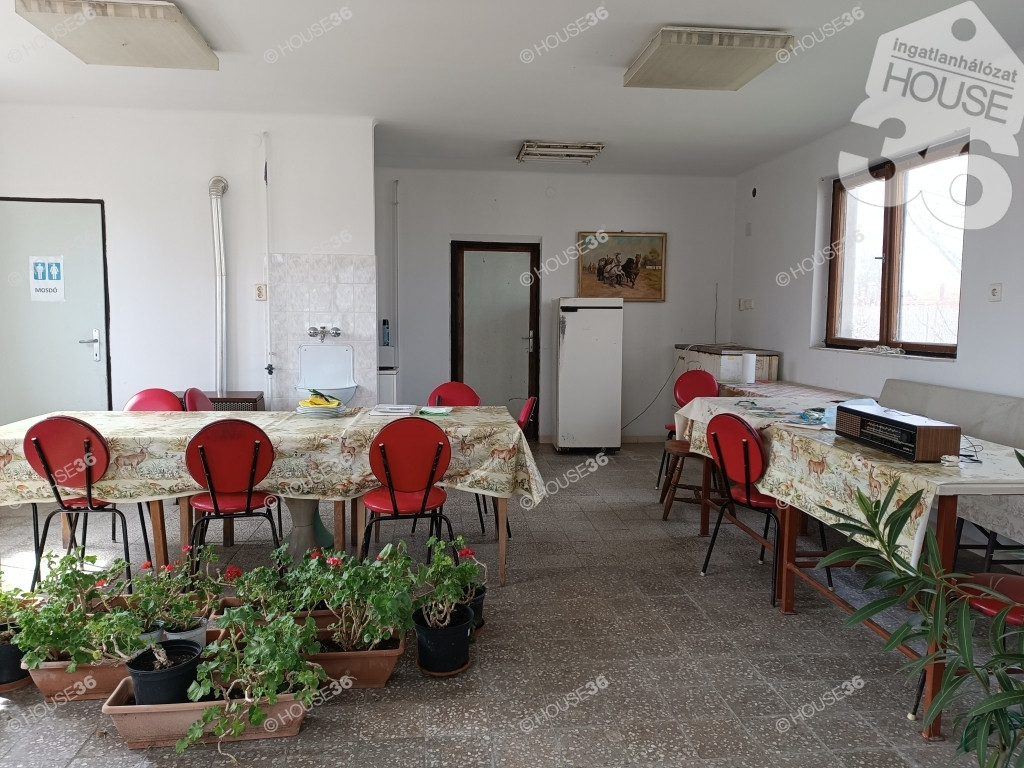 A másik épület 60 m2, vizesblokkokkal, a konyharész hideg-meleg vízzel, hálószoba, előszoba és kb 35 m2 közösségi térből áll.