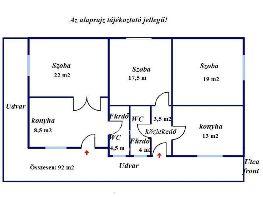 A 338 m2-es telken lévő, vegyes falazatú ingatlan összesen 92 m2, melyben két külön bejárattal rendelkező lakást alakítottak ki. Az egyik 35 m2-es lakótérben 1 nagy szoba, konyha és fürdőszoba WC-vel került kialakításra, a másik 57 m2-es lakásban 2 nagy szoba, közlekedő, konyha, fürdőszoba-WC található. A szobák laminált padlóval, a többi helyiség járólappal borított. Az otthon melegéről Ariston gázkazán radiátoros hőleadókon keresztül gondoskodik. Mindkét lakásban a fürdőszoba modern stílusban lett kialakítva. Igény szerint a két lakás egybe nyitható, de két család külön is használhatja, két generációs lakhatásra kiválóan alkalmas. 2022-ben teljes fűtéskorszerűsítés, víz és villanyvezeték csere történt. A villany és víz fogyasztásához külön almérők felszerelése is megtörtént. A ház teljes lábazat szigetelést kapott. A tetőszerkezet jó állapotban van, a nyílászárók fából készültek. Azonnal költözhető, tehermentes, jogilag rendezett. Teljes körű és díjmentes Otthon Start lakáshitel, CSOK Plusz, Piaci Lakáshitel, Babaváró kölcsön és egyéb banki termékek ügyintézésével állunk rendelkezésére sorban állás nélkül! Az adásvételi szerződéshez megbízható ügyvédi hátteret biztosítunk. Megtekintésért kérem hívjon bizalommal! Eladó ingatlana van? Szívesen segítek az értékesítésben!