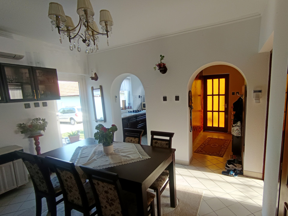 A földszint jelenlegi elrendezése szerint az előszobába érkezünk, ahonnan az étkezőbe jutunk, innen nyílik egy nappali, konyha, fürdőszoba, külön mosdó és egy hálószoba. Továbbá innen lejuthatunk a szuterénbe és felmehetünk a tetőtérbe.