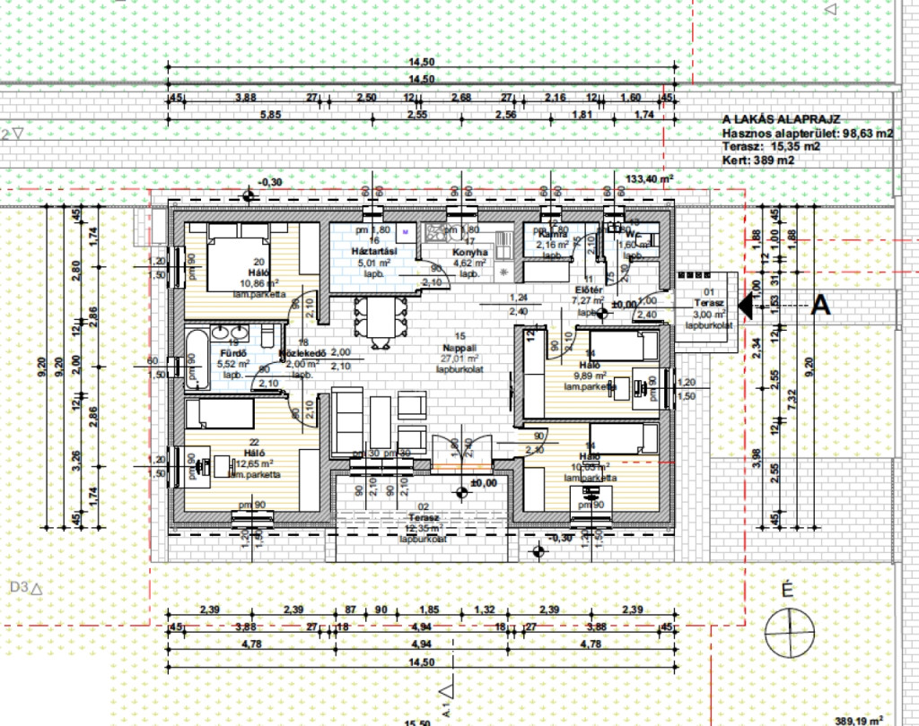 Fűtése hőszivattyúval, padlófőtéssel, melegvíz ellátása bojlerrel lesz biztosított.