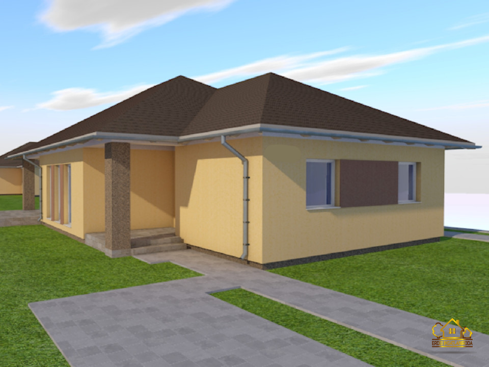 Eladó Kiskunlacházán egy új építésű, nettó 100 m² alapterületű, egyszintes családi ház. (Az alaprajzon az „B” jelű épület)