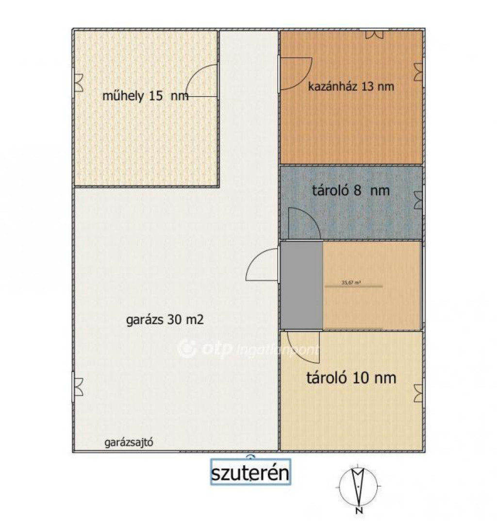 Szuterén: 2 autós garázs + nagy műhely