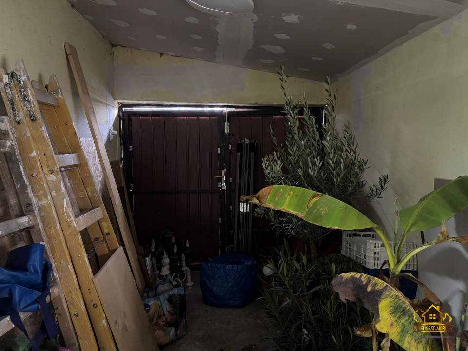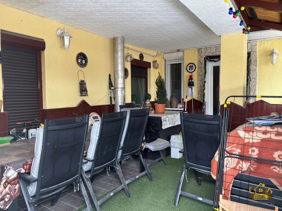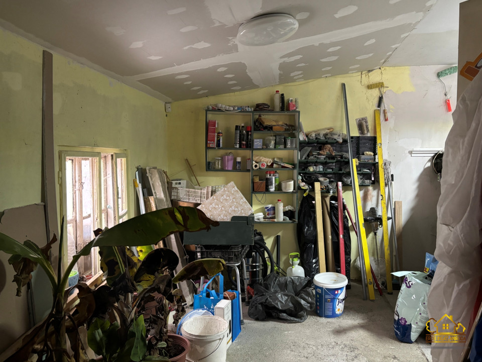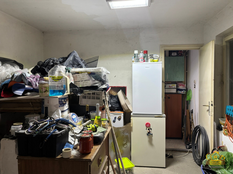 A házhoz külön bejárattal kapcsolódik egy 5 m²-es tároló, egy kamrával és a garázzsal. Innen nyílik a lejárat a 8 m²-es száraz pincébe. A lakás és a melléképület egy 13 m²-es fedett terasszal összekötött.