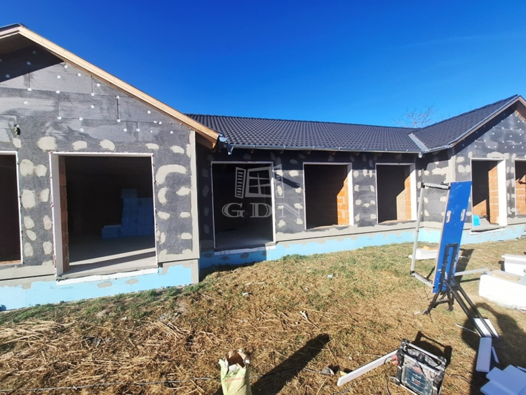 A ház beton alapra, 30-as Porotherm téglából, fa födémmel, Bramac antracit színű betoncserép fedéssel épül meg.