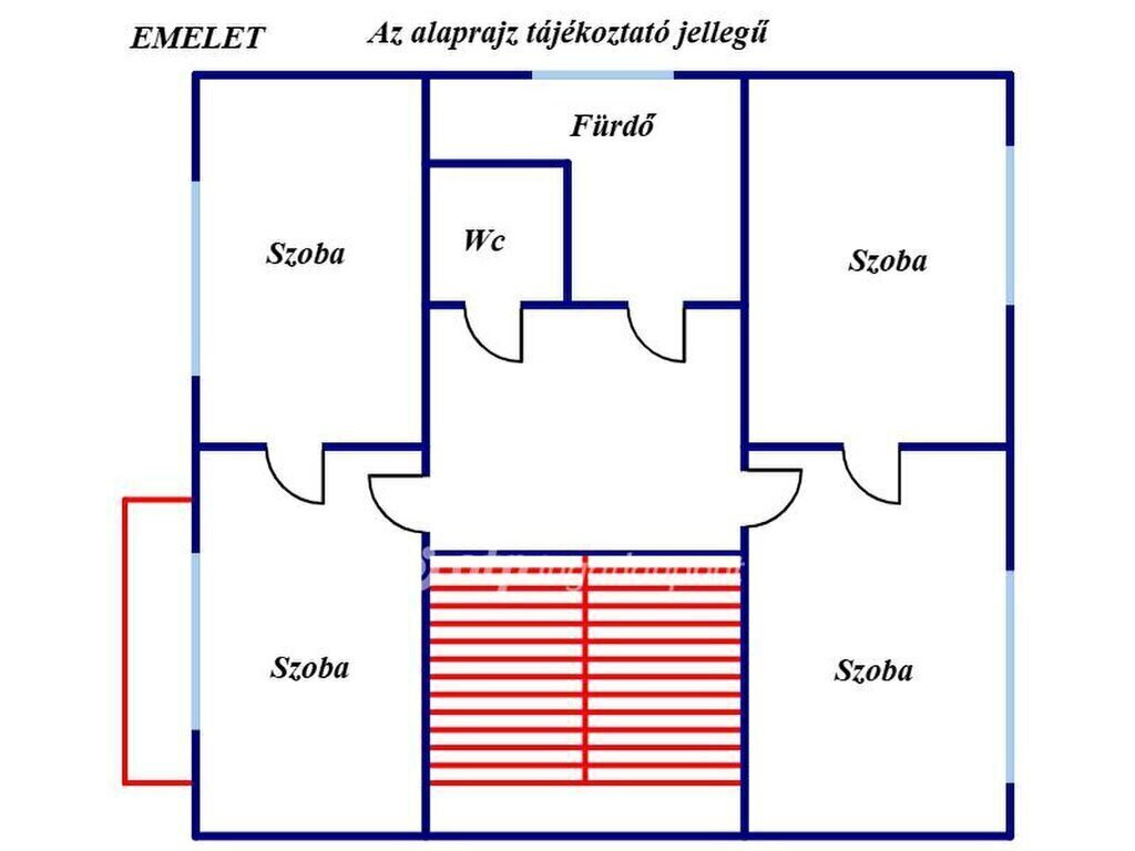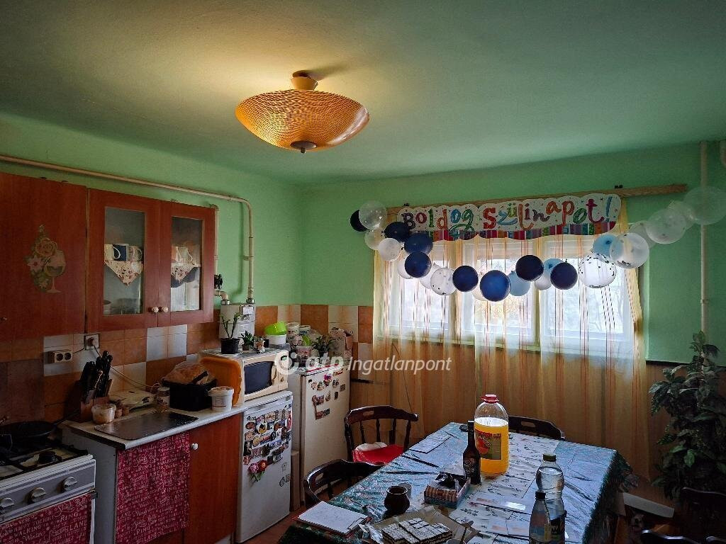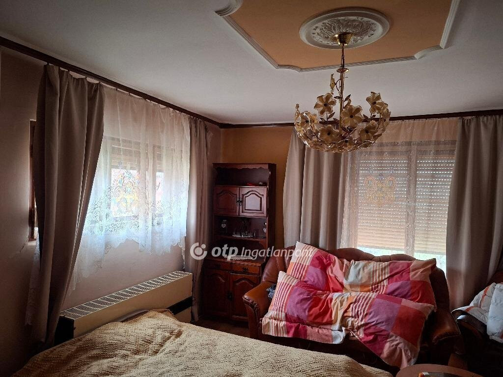 A 180 nm-es, beton alapra, tégla falazattal készült ingatlan a központhoz közel található. A földszinten két szoba, konyha, közlekedő, kamra, előszoba, közlekedő, fürdőszoba wc-vel helyiségek vannak. Az emeleti részen további 4 szoba, külön fürdőszoba és wc található. A szobák parkettásak, a többi helyiség járólappal burkolt. Az otthon melegét gázkazán biztosítja, radiátoros hőleadással.