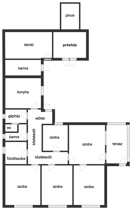 A főépülethez kapcsolódó melléképületek további lehetőségeket kínálnak: spejz, füstölő, tároló, présház és kitéglázott pince. Az udvaron található egy nagyméretű fedett fatároló, amely igény esetén beépíthető.
