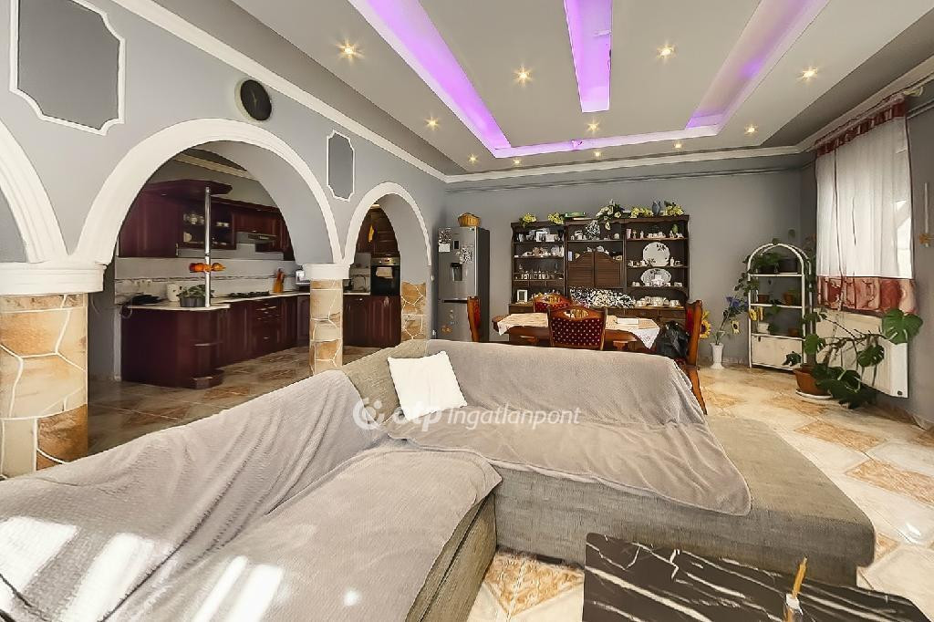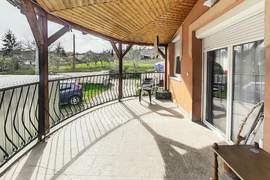Az ingatlan Budapesttől 100 km-re, Egertől 27 km-re, Gyöngyöstől 23 km-re, a Mátra déli lábánál, a főúttól távol, a település csendes, természetközeli övezetében 866 m2-es patakkal határolt telken található. A statikailag stabil, egyszintes, tégla falazatú ház 2007-ben épült, tetőszerkezete ép, cseréppel fedett; külső állapotát tekintve esztétikus látványt nyújt. Az összkomfortos, jó elosztású házat 10 helyiség - előtér, amerikai konyhás nappali, 2 szoba, 1 félszoba, közlekedő, fürdőszoba, külön WC, kamra, kazánház - alkotja. A pazar, déli tájolású 51 m2-es amerikai konyhás nappali padlóját nagyméretű kerámialapokkal burkolták, 13 m2-es tetővel fedett terasz tartozik hozzá. Az étkezővel kombinált nappali szobát árkádsor választja el a konyhától, melybe egyedileg tervezett konyhabútort építettek be gáz főzőlappal, és elektromos sütővel, páraelszívó berendezéssel. A nappali mennyezetét LED és spot lámpákkal felszerelt gipszkarton sziget ékesíti. Az utcafronti oldalon két azonos méretű 16,8 m2-es, laminált parkettával borított szoba helyezkedik el, mindkettőből egy-egy kisebb 3,8 m2-es terasz nyílik, szép kilátással a környező hegyekre. A hátsó udvarra tekintő 9 m2-es félszobába szintén laminált parketta került, a többi helyiség kerámia burkolatot kapott. A kültéri nyílászárók műanyagok, az ablakok redőnyözöttek, a beltéri ajtók fából készültek. A fürdőszobában zuhanyzó és sarokkád is rendelkezésre áll. Az otthon melegéről a kazánházba beszerelt cirkós gázkazán és egy vegyestüzelésű tüzelésű kazán gondoskodik, ezenkívül 2 db hűtő-fűtő klíma (H tarifás), és a nappaliban egy beépített kandalló szolgálja a lakók kényelmét. Parkolás céljából az udvaron 1 db lemezgarázst helyeztek el. A vételár részeként a tulajdonos ajándékba adja a ház mögött, a patak túlsó oldalán elhelyezkedő, külön helyrajzi számon nyilvántartott földterületet, valamint egy fél hektáros szántóföldet. Gyöngyösi lakás beszámítása értékegyeztetéssel lehetséges!