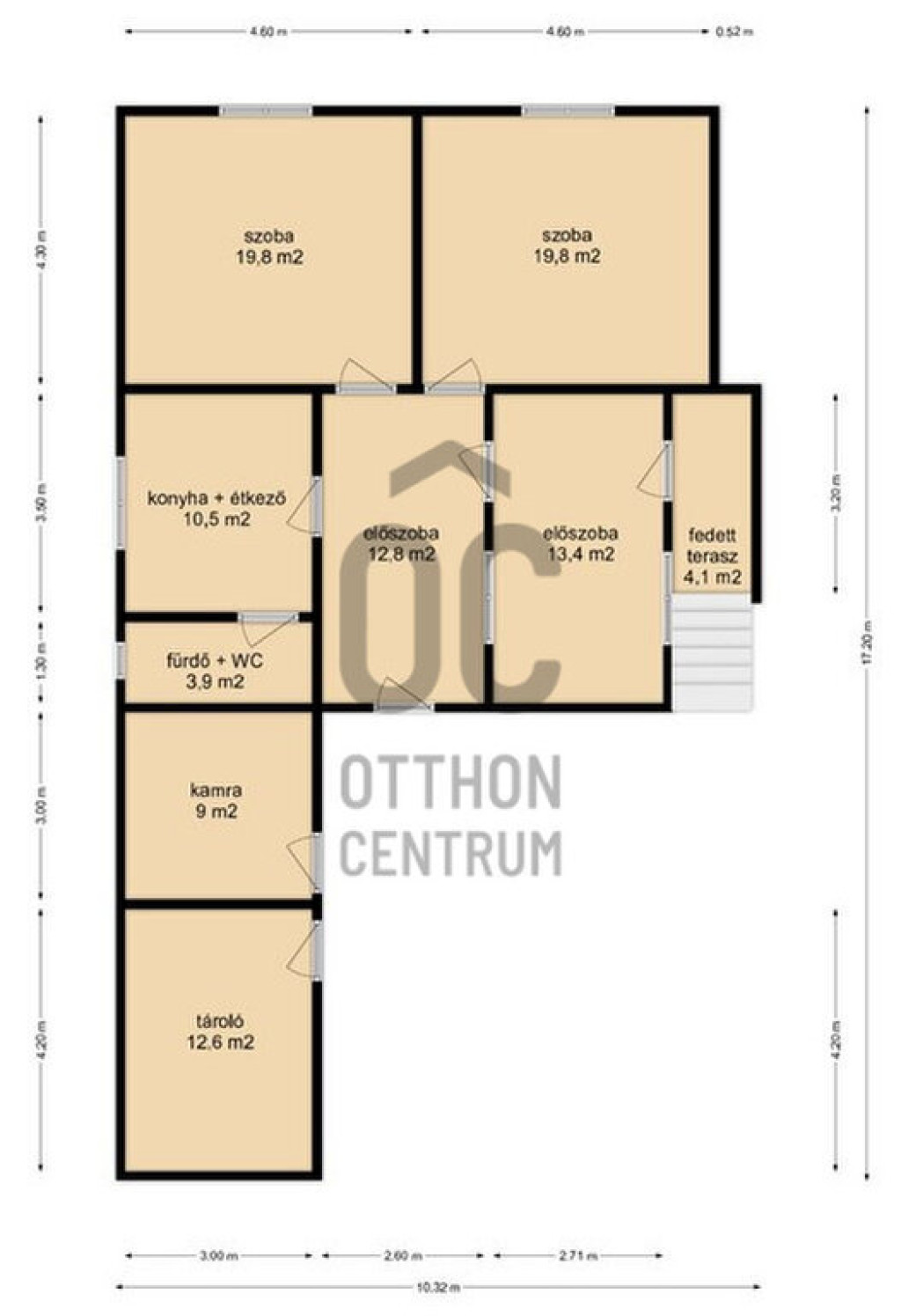 - A 80 m2-es házban két egész szoba, konyha, fürdőszoba-WC, kamra, előszoba került kialakításra.