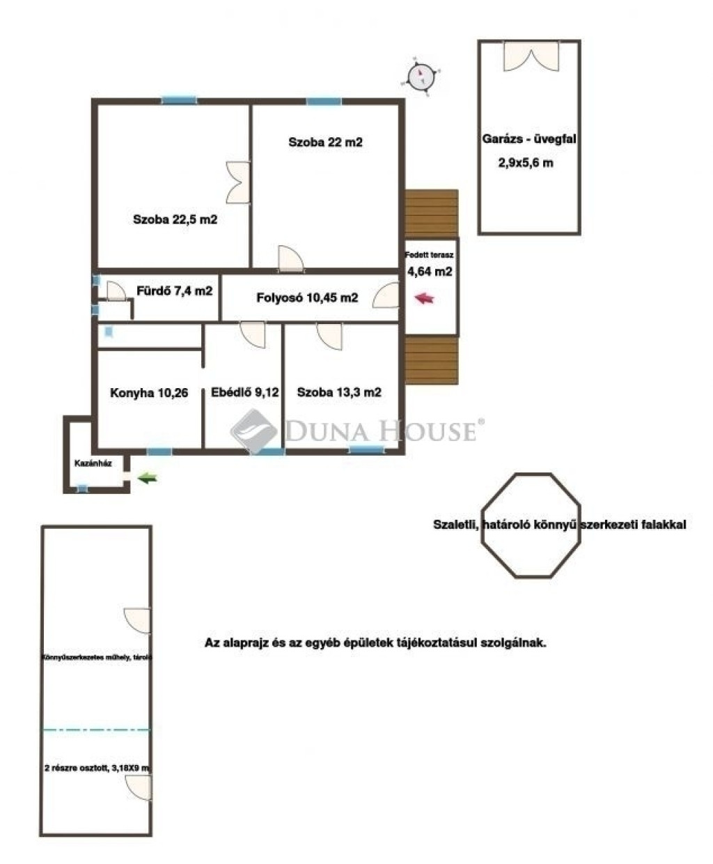 28 m²-es, könnyűszerkezetes tároló és műhely két helyiséggel