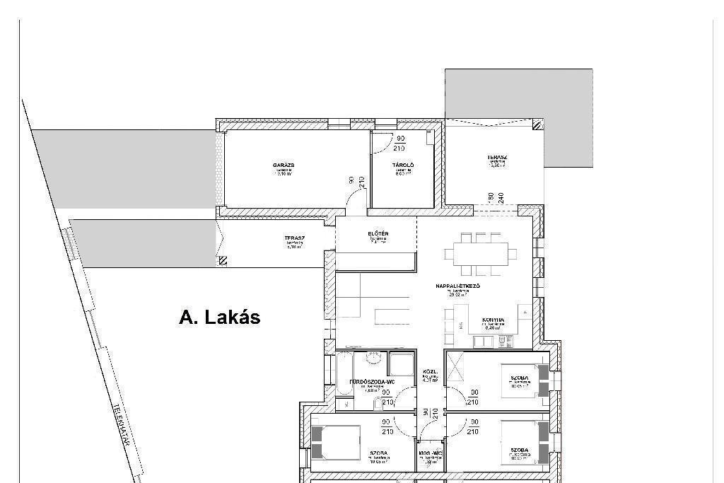 - Lakások méretei: Alakás 136 m2, B lakás 135 m2