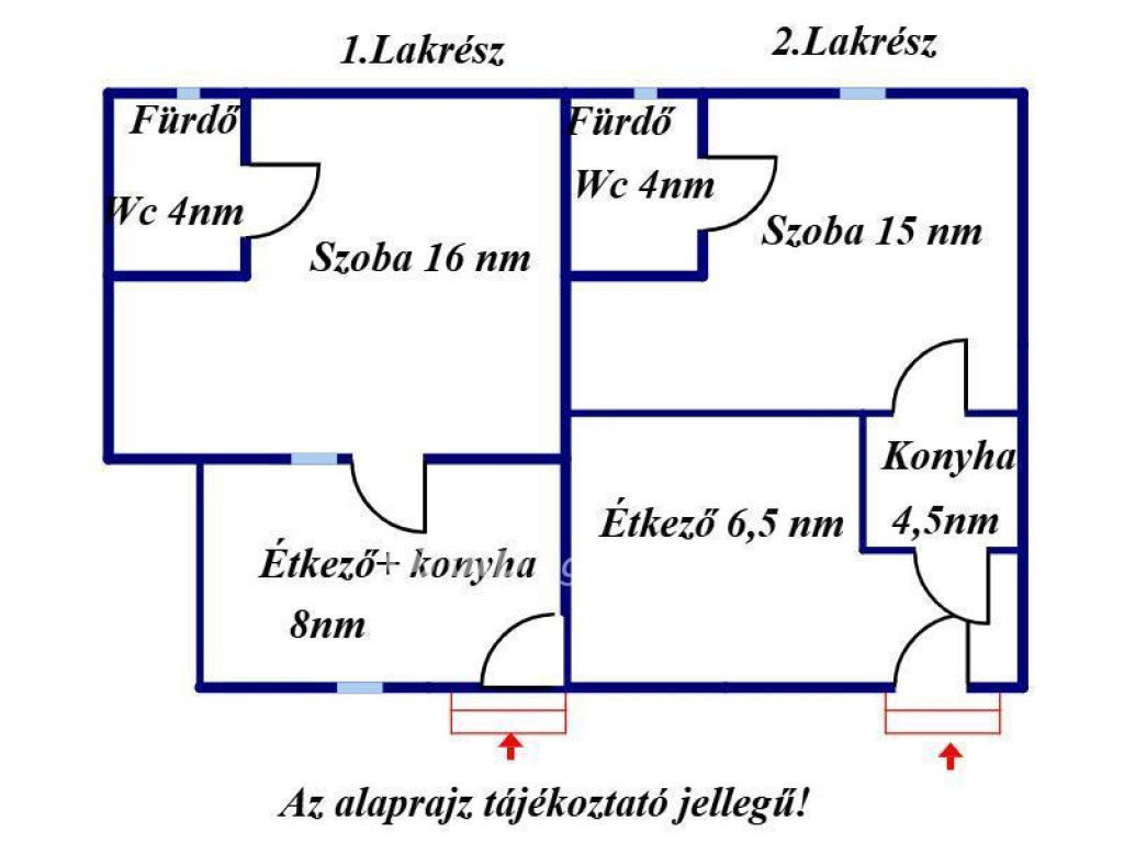 Külön bejáratú saját mérőórákkal ellátott lakrészek: 2 db, egyenként 30 m2 , 1db 41 m2