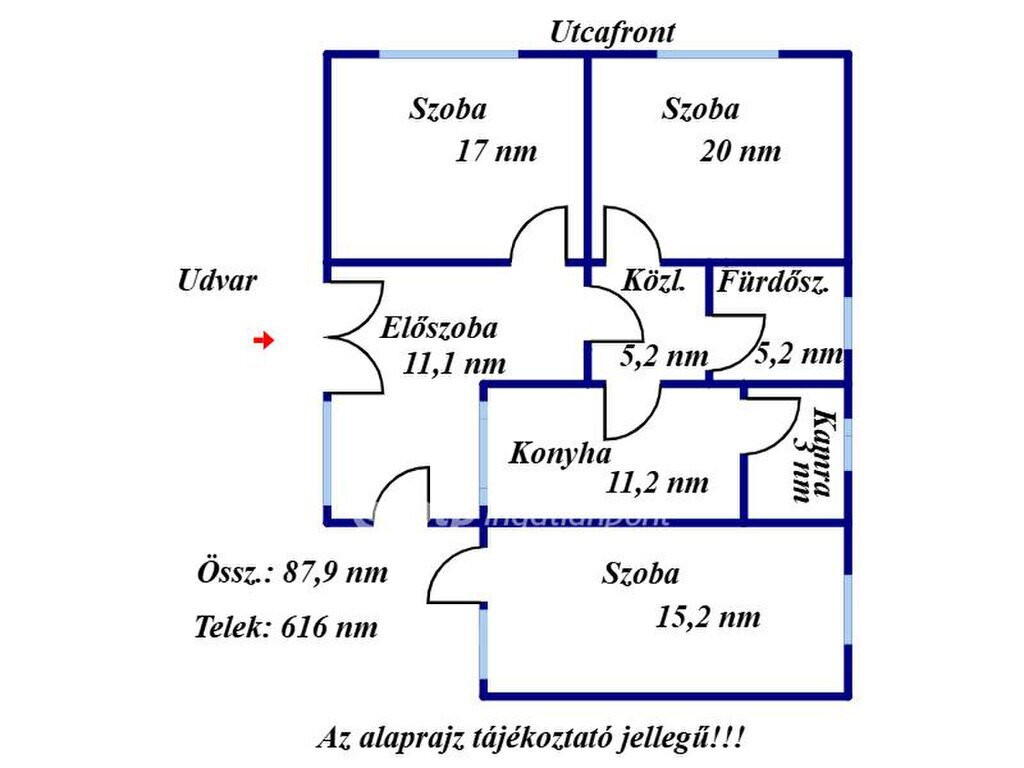A 87,9 négyzetméteres, vályog falazatú családi ház egy 616 négyzetméteres telken áll. Az ilyen ingatlanokban az a legszebb, hogy aki lát bennük fantáziát, az nem csupán egy házat lát, hanem egy lehetőséget. Egy olyan helyet, ahol a meglévő értékekre építve egy igazán szerethető, személyes hangulatú otthon születhet.