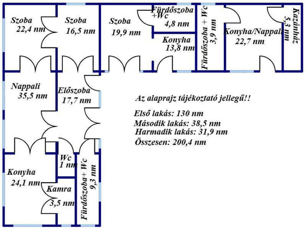 Az ingatlan három különálló lakrészből áll.