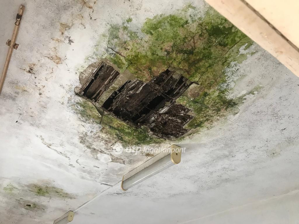 működésképtelen. A tető héjazata több helyen sérült, a födém beszakadt, az állagmegóvás nem biztosított. A fürdőszoba szerelvényeket
