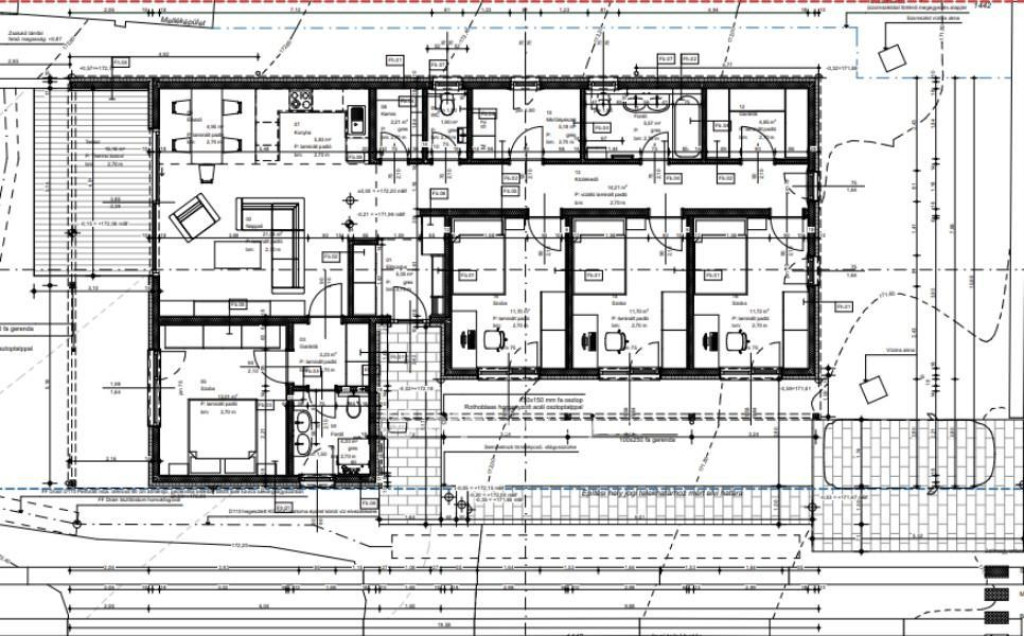 Az ingatlanok 1806 nm-es telken épülnek, a hátsó házhoz szolgalmi út tartozik, így a házakhoz tartozó telekterület 800 nm-es lesz.