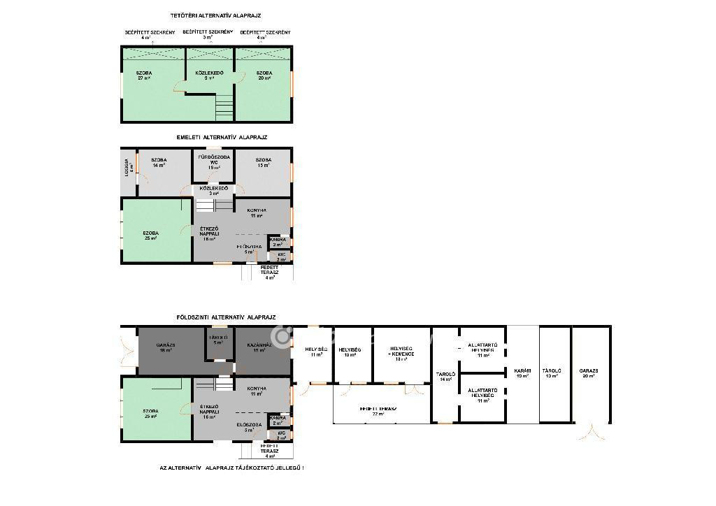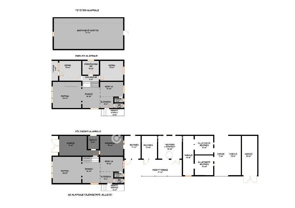 - Felső szint: Közlekedő, fürdőszoba+WC, 2 szoba