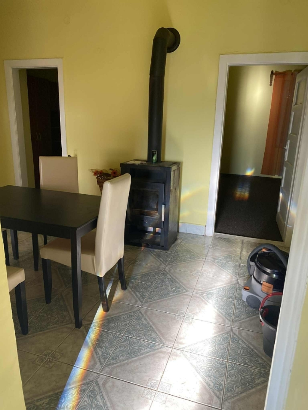 Fűtése elektromos radiátorral történik, de a képen látható kályhával is lehetséges. Légkondicionáló beszerelésével is gazdaságosan fűthető.