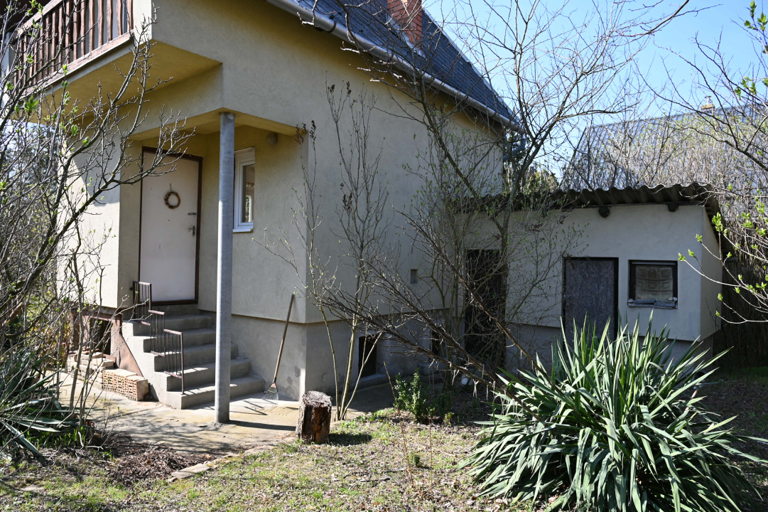 A 634 négyzetméteres telken sok árnyékot adó fa és több termő gyümölcsfa is található, továbbá egy jó állapotú garázs, egy tároló és egy kinti wc és zuhanyzó helyiség is.
