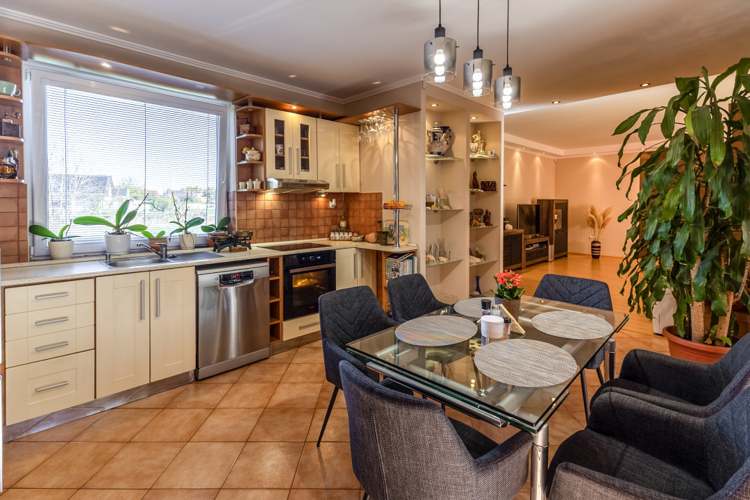 A 120 m²-es lakótérben nappali, konyha, 3 szoba, fürdő, külön WC, kamra, mosókonyha található.