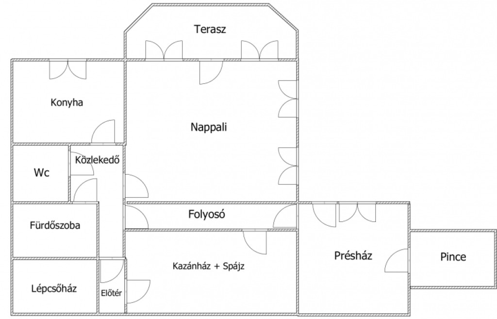 A ház nyílászárói részben cserélve lettek, fa illetve műanyag nyílászárókra, valamint redőnnyel felszereltek.